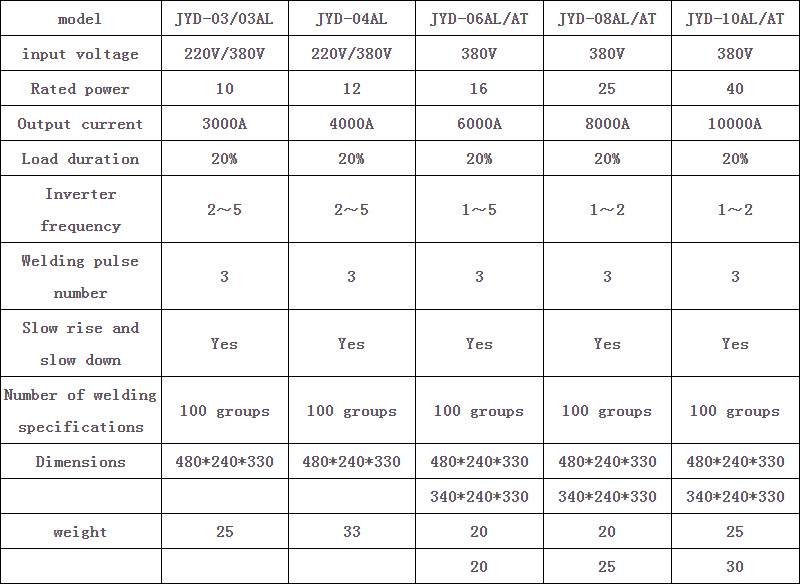 Specification and model of inverter spot welding machine: